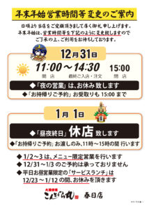 【春日店】年末年始営業