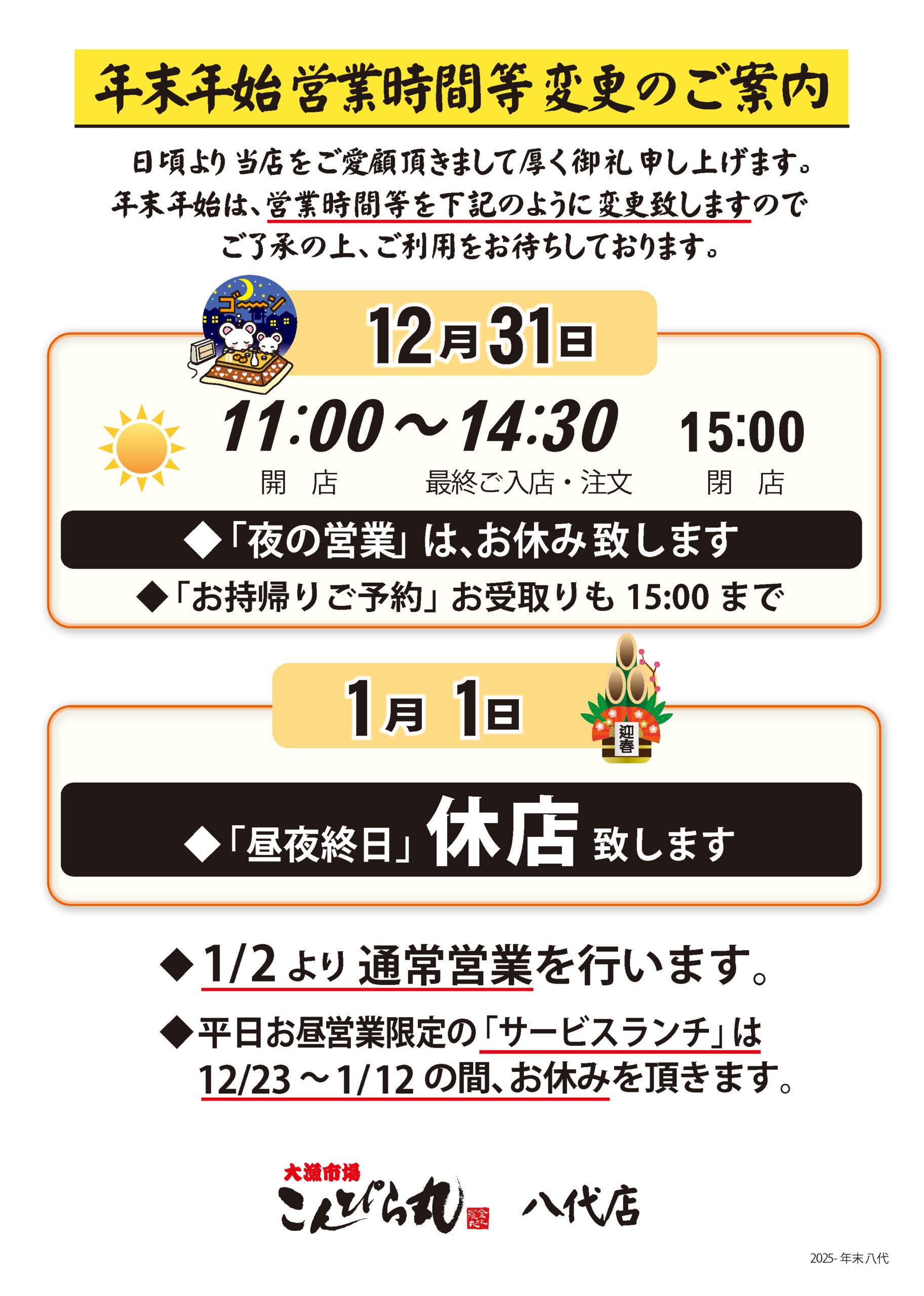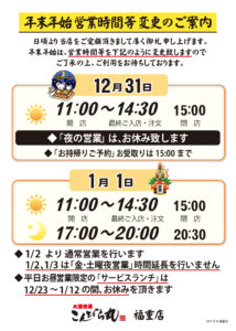 全店年末年始営業のお知らせ