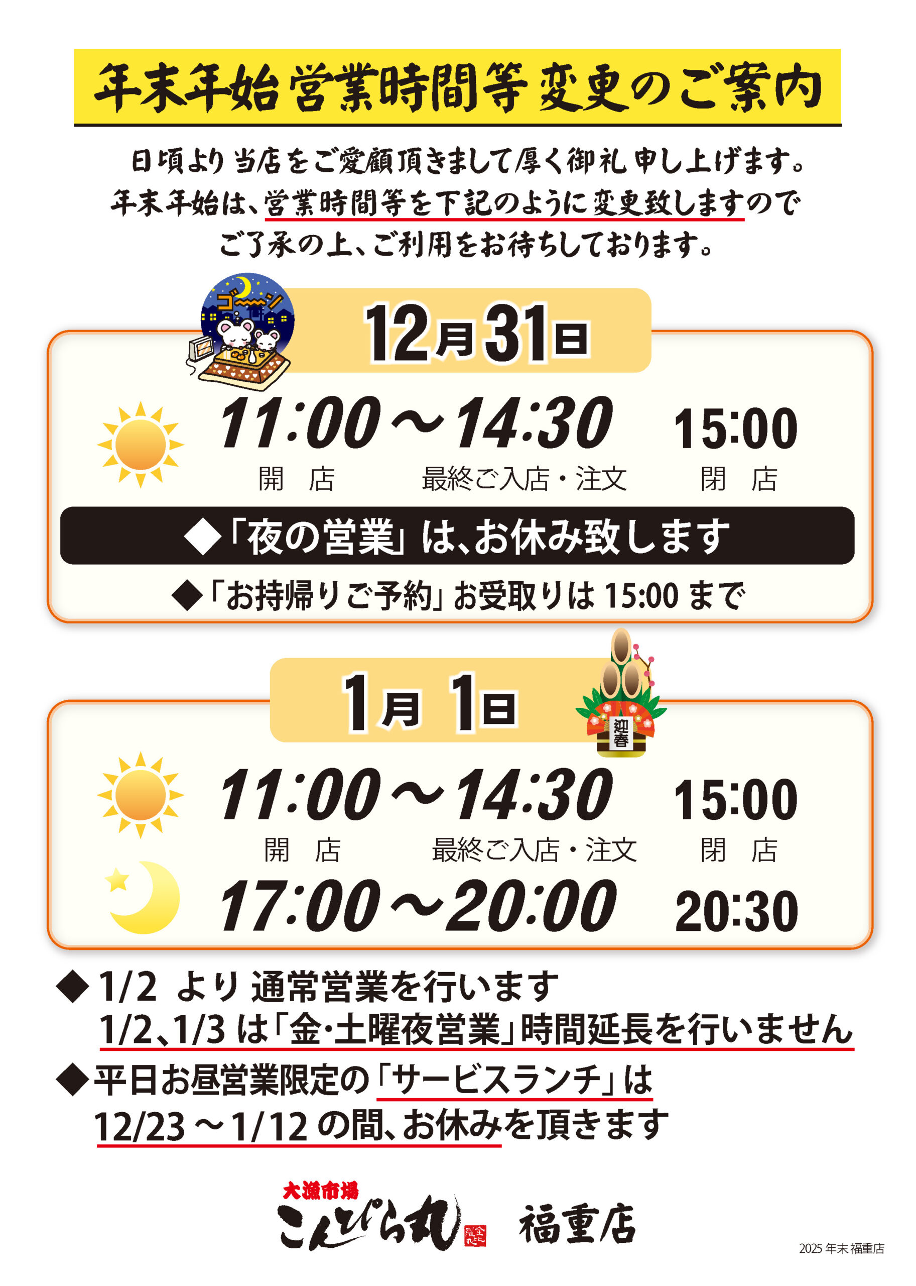 【福重店】年末年始営業