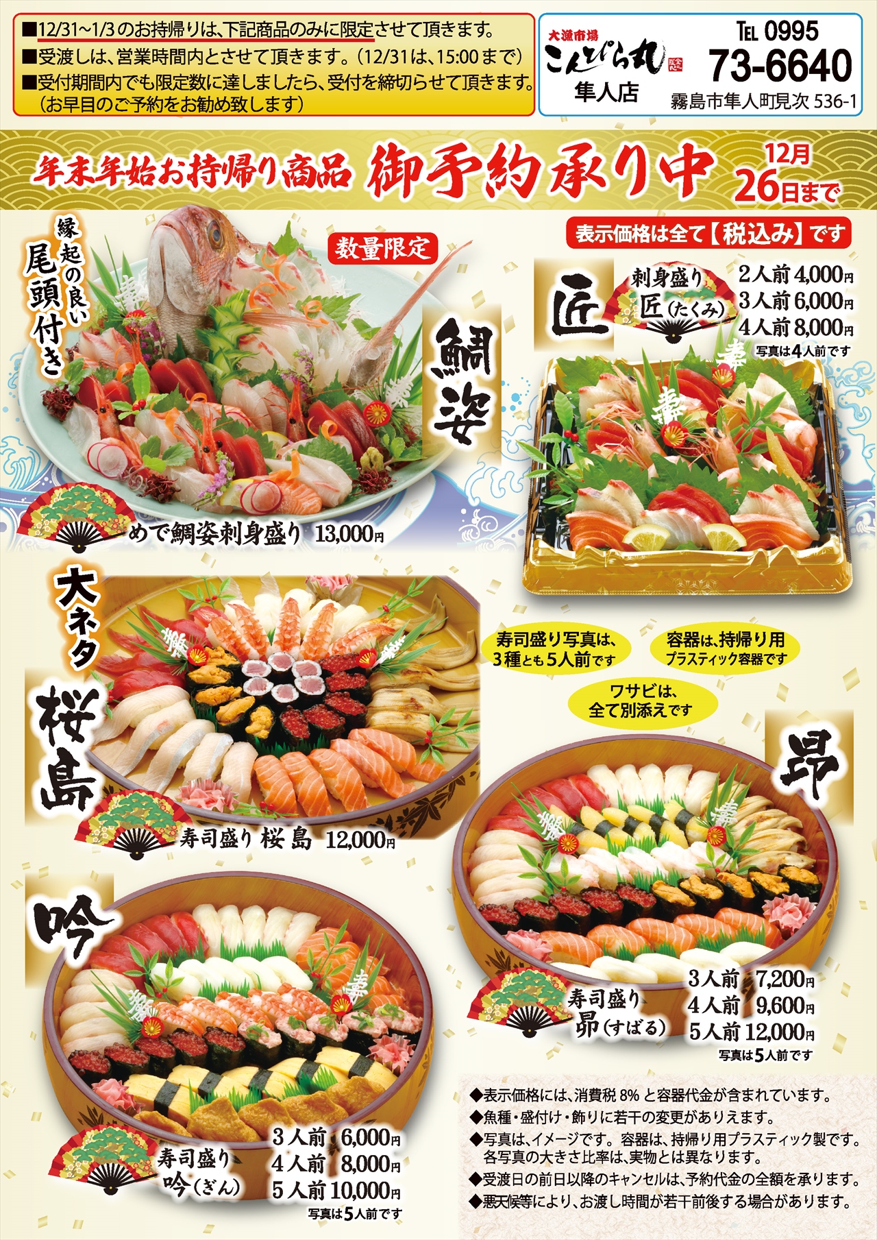 行く年 くる年を美味しいお魚で!!ご利用をお待ちしております。